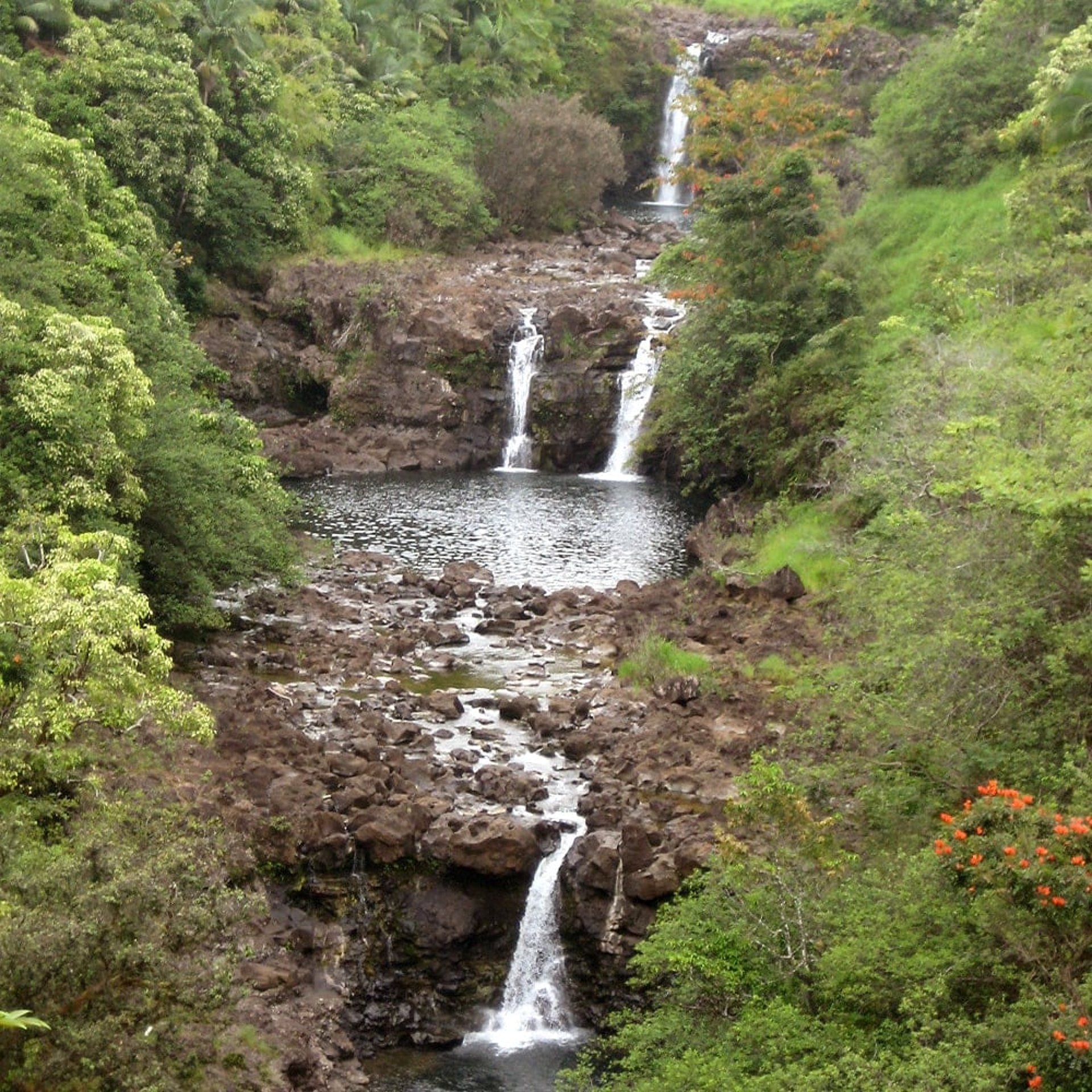 Auf der Suche nach einigen versteckten Wasserfällen sind wir auf einen botanischen Garten gestoßen, dessen Blumenpracht wir Euch nicht vorenthalten wollen. Darüber habe ich bisher noch nicht berichtet. Es ist auch schwierig über das Grün und die Blumen hier zu schreiben. Überall und nirgends stehen gigantische HybiscusBÄUME vor einem undurchdringlichen Dschungel, blühen unzählbare Strelitzien vor einem Teppich von kleinen rosa Blumen, fahren wir durch einen Wald von blau blühenden Bäumen. Das lässt sich einfach nicht mit der Kamera einfangen.