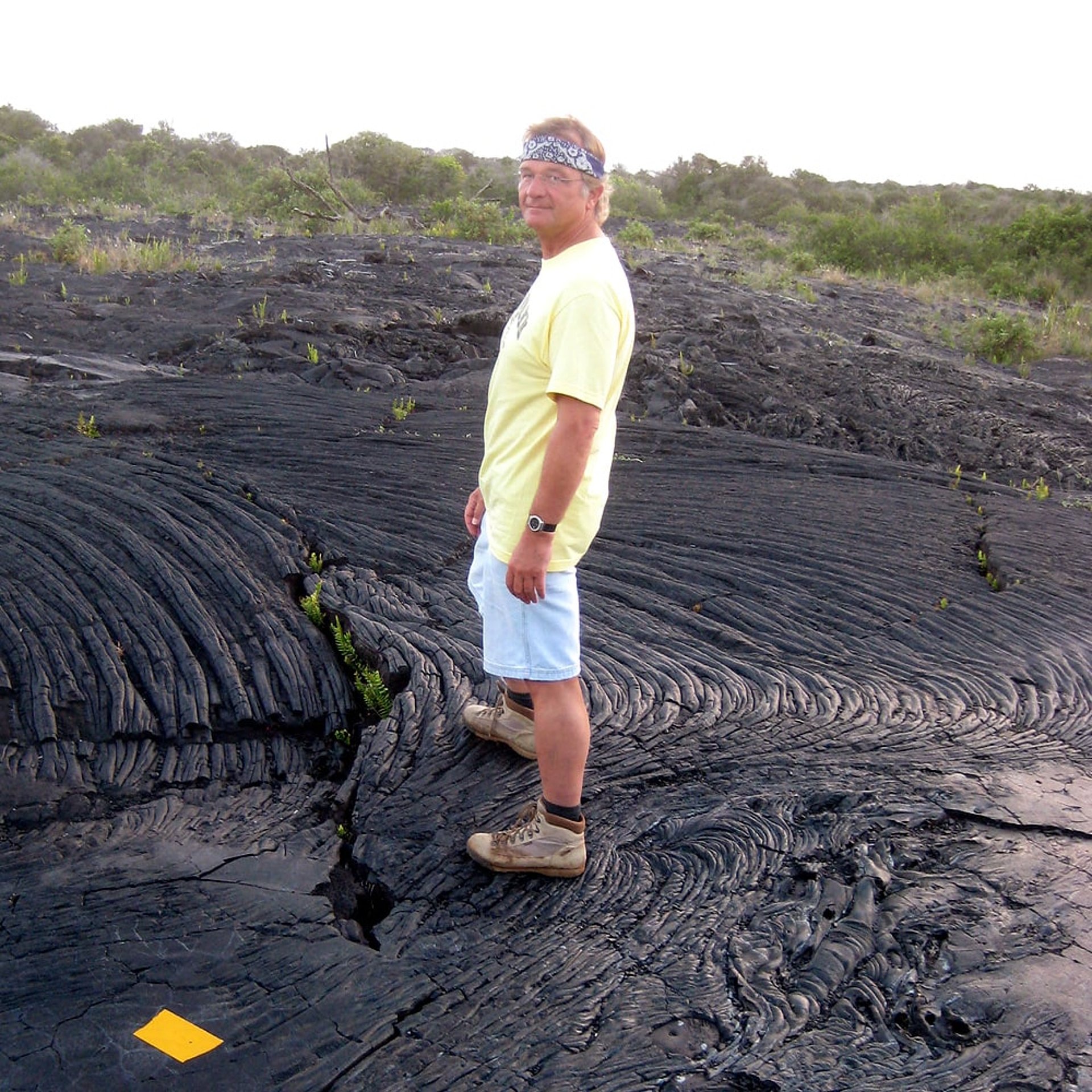 Die Erde ist bedeckt mit gekühlter und hart gewordener Lava. Und man kann noch genau sehen, wie diese Masse geflossen und dann hart geworden ist. An einer anderen weiter südlicheren Ecke gibt es eine Stelle, an der immer noch in regelmäßigen Abständen heiße Lava des Kilauea ins Meer fließt. Da sind wir natürlich noch hingefahren, um uns dieses Schauspiel aus sicherer Entfernung anzuschauen. Denn selbstverständlich warnen haushohe Schilder vor der Gefährlichkeit dieses Unterfangen und man kann dieses Gebiet nur auf „own risk“ betreten. Komisch, dass dann doch bussweise die Touristen dorthin gefahren werden und man den fotografierenden Japanern kaum ausweichen kann. Witzigerweise tragen diese Rettungswesten und Handschuhe… wir haben leider nicht erfahren, wofür das gut sein soll. Unser japanisch ist einfach noch nicht gut genug. Aber beruhigt waren wir dann doch als wir sahen, dass überall Führungsleinen gespannt waren und auf dem Boden gelbe Marker auf den Steinen angebracht waren, die man sicher betreten konnte…