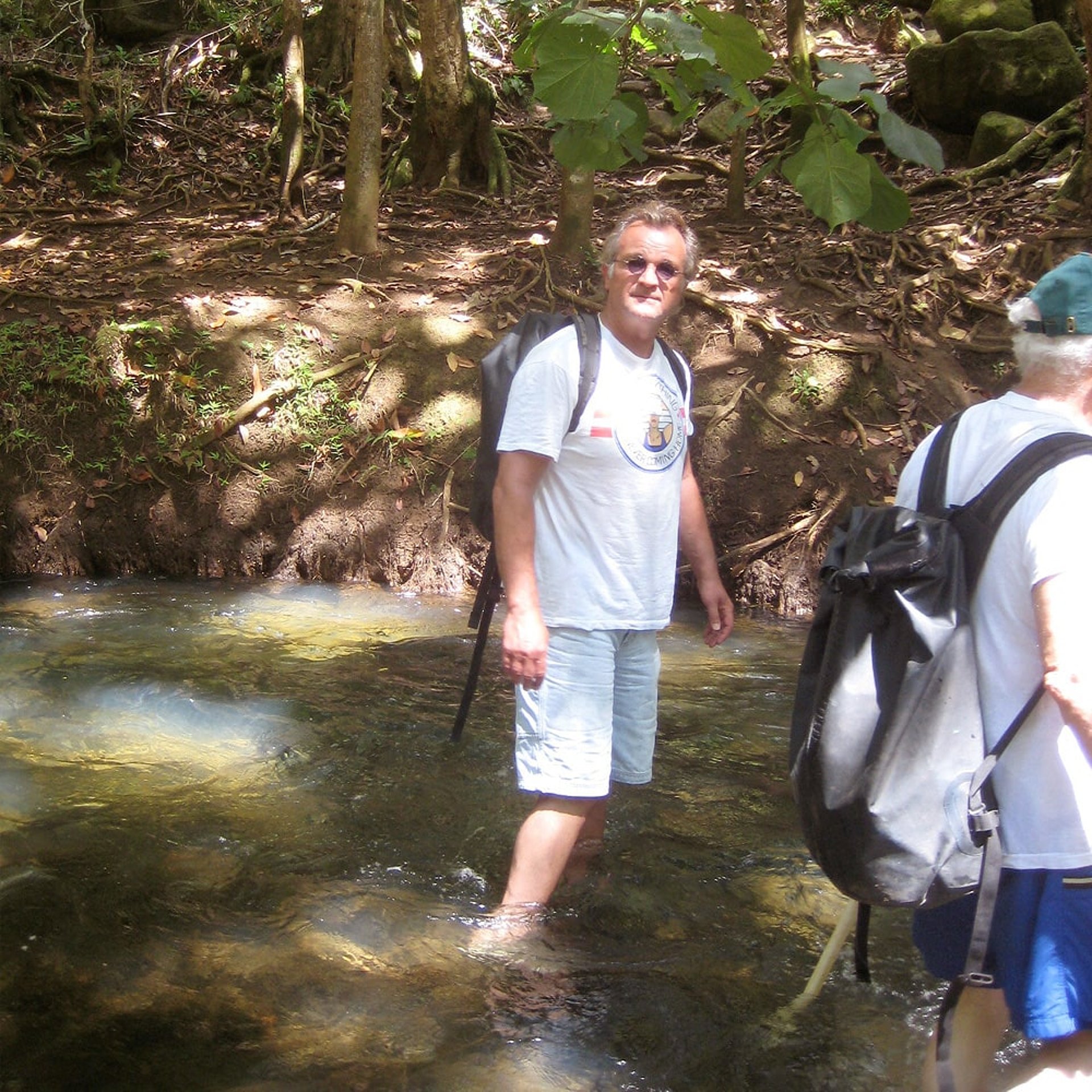 Das war aber noch nicht alles. Denn als wir am Zielufer anlegten, mussten wir noch ungefähr 2 Meilen zum Wasserfall wandern. Und zwar teilweise durch den Bach und der ging bis über die Knie. Gut, dass wir Turnschuhe trugen – die sind besonders bequem, wenn die klatschnass sind. Die trocknen auch besonders gut :-)