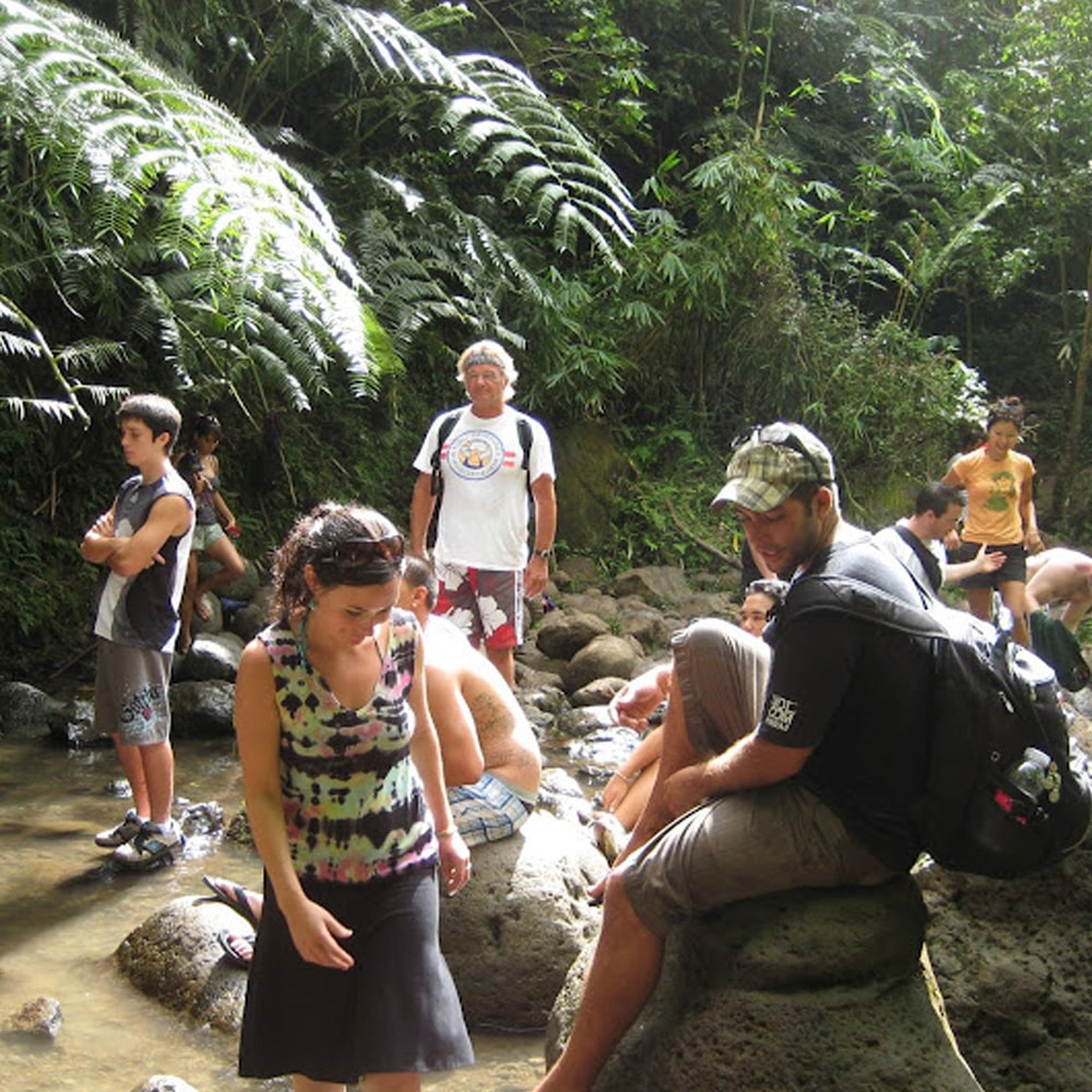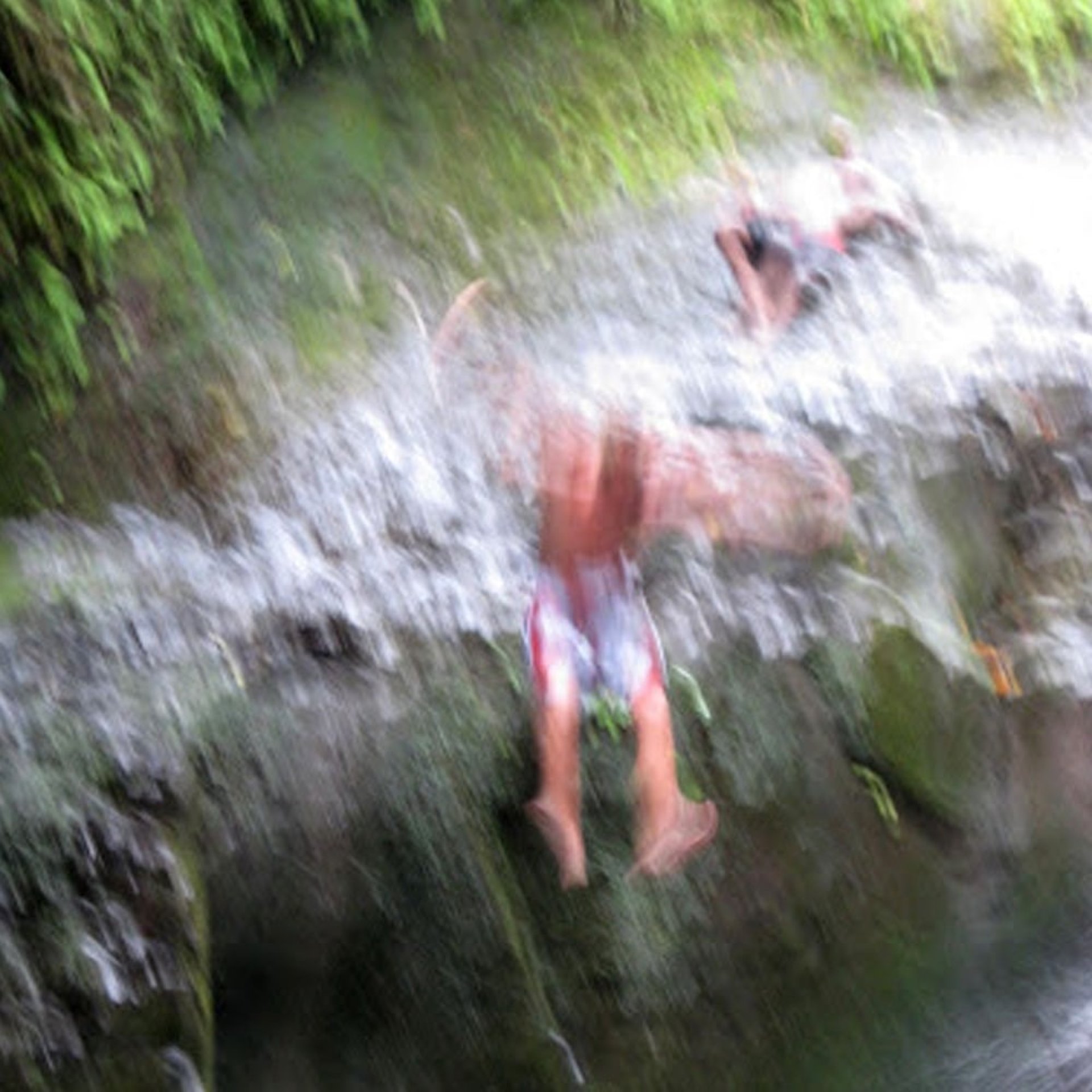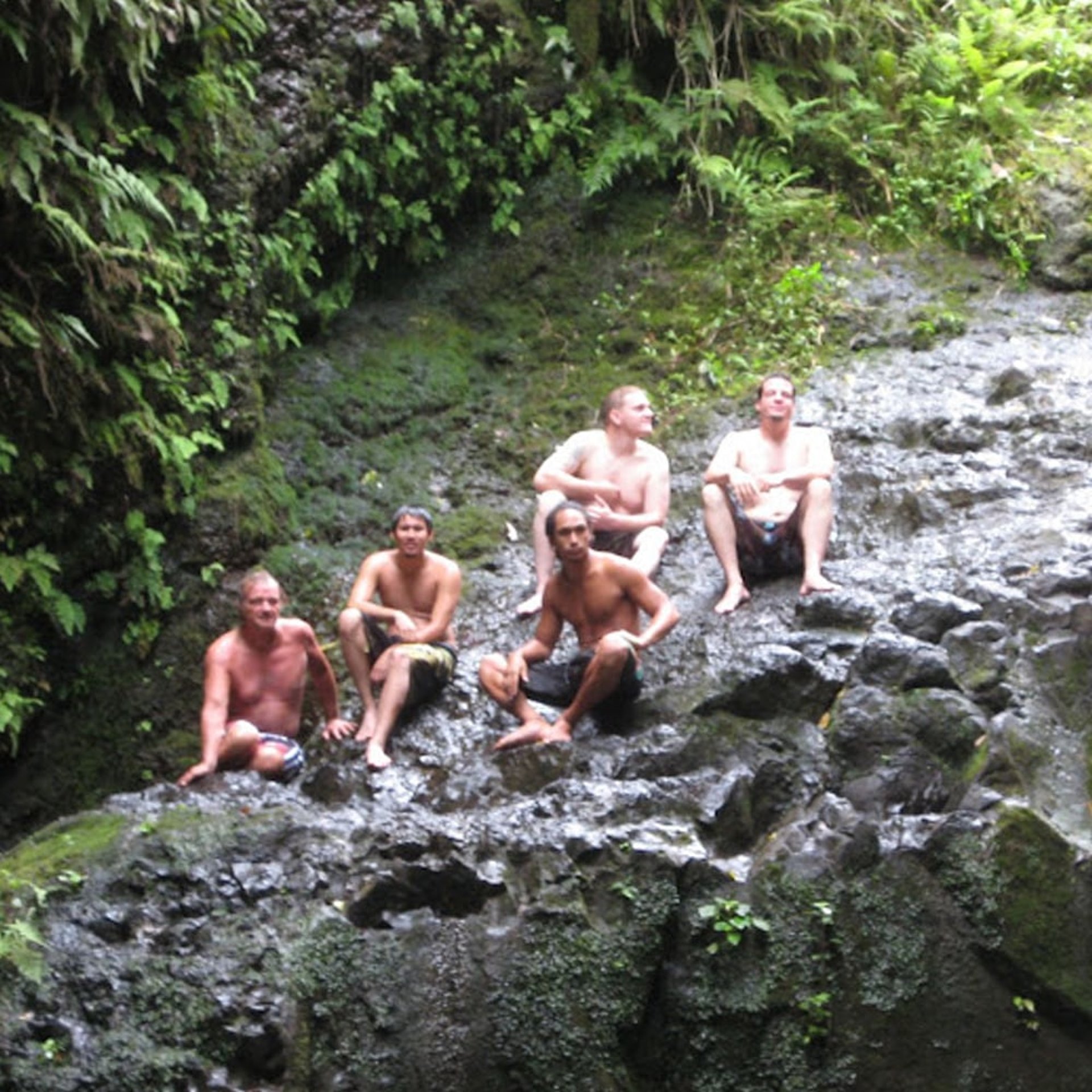 Am Samstag waren wir zusammen mit ein paar Leuten hiken zu einem klasse Wasserfall. Hat Riesenspaß gemacht und war eine Riesensauerei. Der Weg war völlig aufgeweicht und glitschig. Die meiste Zeit bin ich durch den Bach gewatet. Was dazu geführt hat, dass ich heute im Flieger meine Latschen trage, da meine einzigen festen Schuhe zwar wieder trocken sind aber "stinken wie Sau". An dem Wasserfall sind Etliche mutig ins kalte Wasser gesprungen. Von uns waren auch einige dabei -- allen voran natürlich Tilo. Ich habe leider keine Bilder davon -- wahrscheinlich habe ich beim Abdrücken zu viel gezittert vor Sorge. Aber ich bekomme noch tolle Bilder zugeschickt.