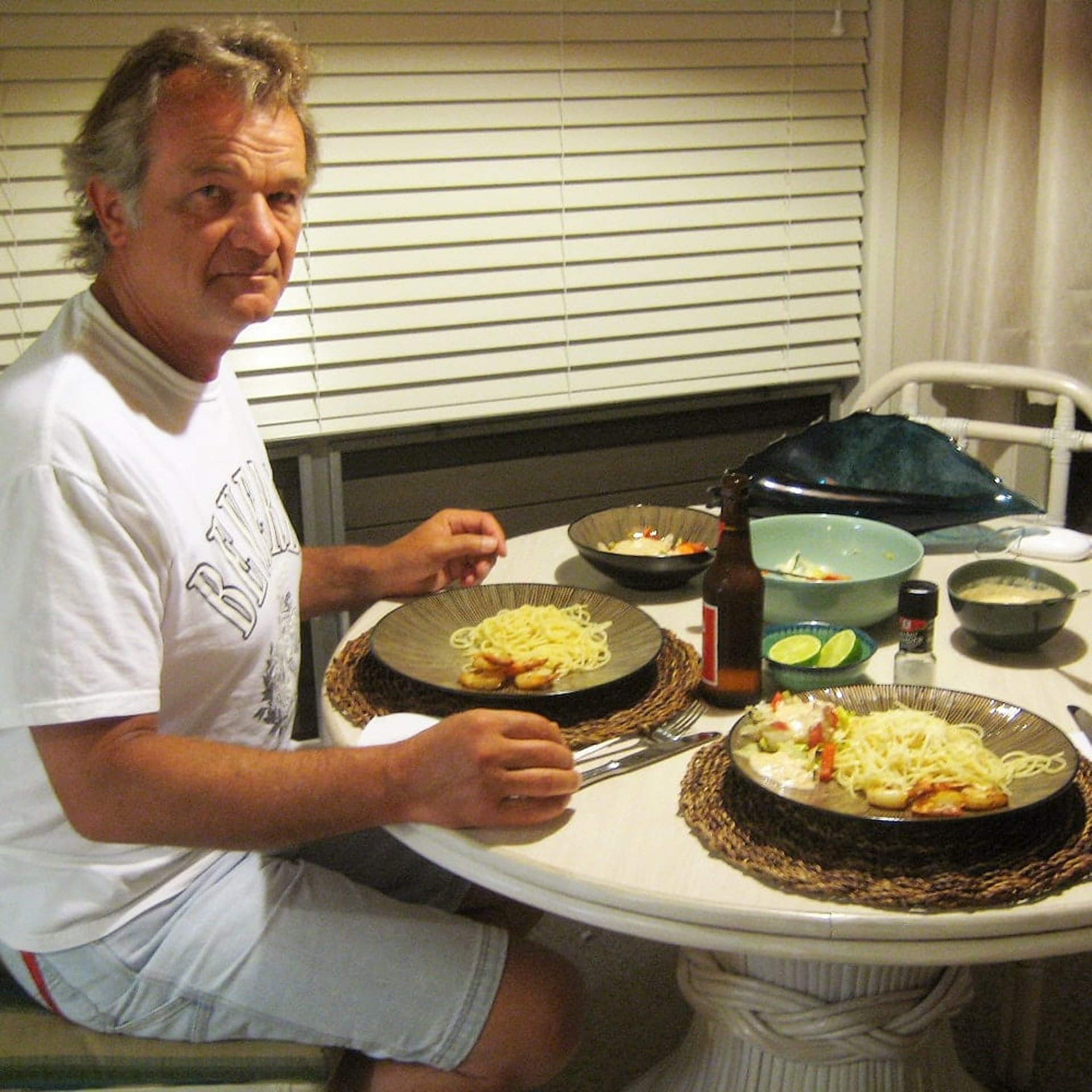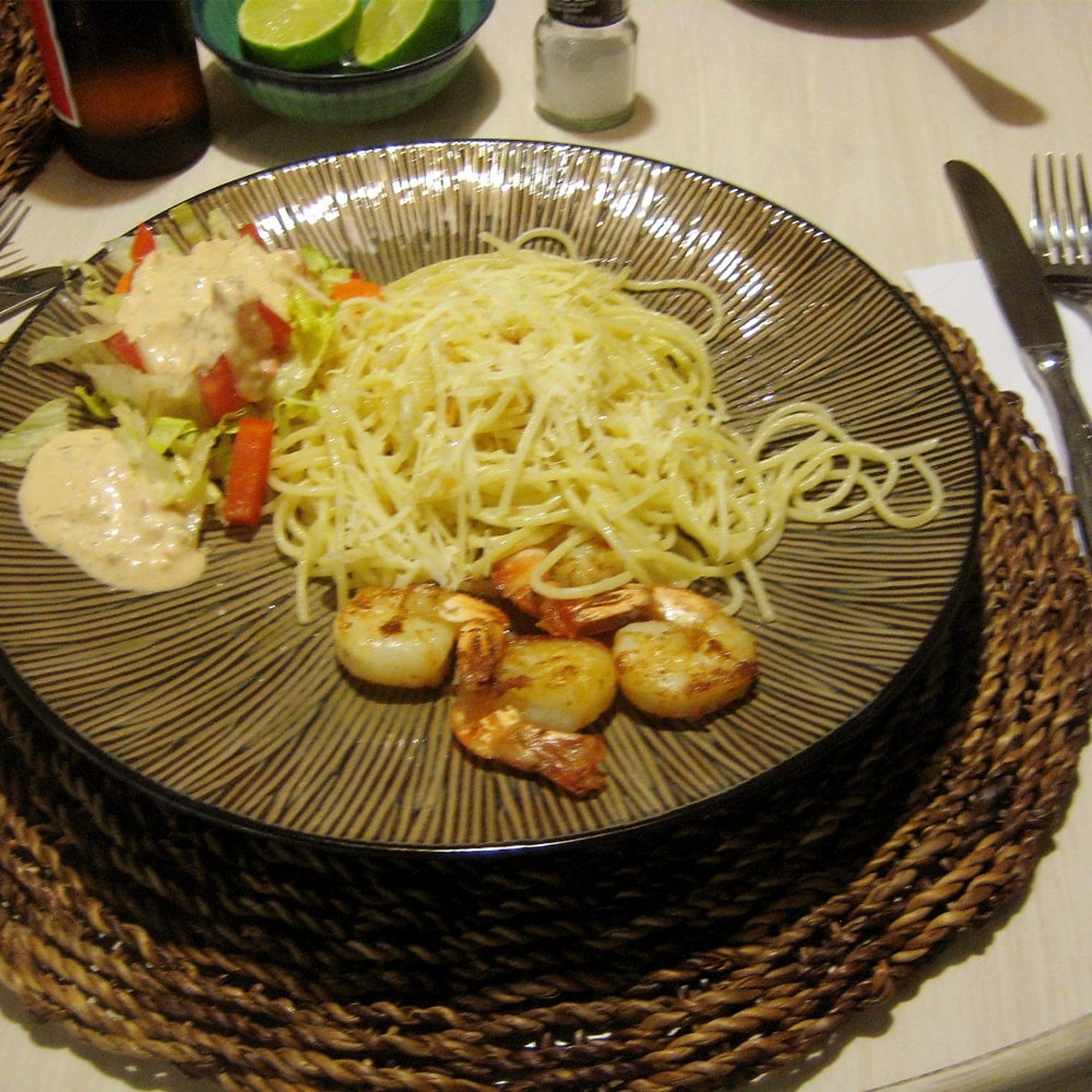 Am letzten Abend auf Kauai haben wir gesehen, dass wir unseren Kühlschrank noch leer bekommen. Einige Male haben wir doch selber gekocht – besonders nachdem wir in Hanalei einen hervorragenden Fischladen gefunden haben. Von da an gab`s immer Mahi Mahi, Shrimps, Ono, Ahi und so weiter. Lecker Nüdelchen dazu oder einen frischen Salat. Das selbstgemachte Salatdressing haben wir auch gleich in dem Laden bekommen SCHMACKOFATZ. Und am letzten Abend wurde dann der Kühlschrank geleert. Nudeln in Butter mit Knoblauch, dazu frischen Salat mit thousand Island-Dressing, dutzende Tiger Shrimps – dann nenn ich mal ein RESTE-ESSEN!!!