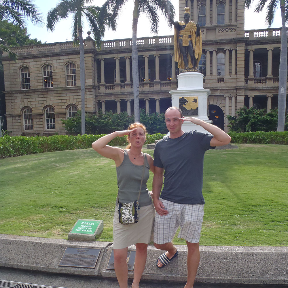 Aber für alle „Hawaii O-5 Fans“ – wir haben die komische Statue gefunden und fotografiert. Dabei handelt es sich übrigens um Kamehameha I., den Großen (* 1758, † 1819) Er war der erste König von Hawaii (1795–1819).