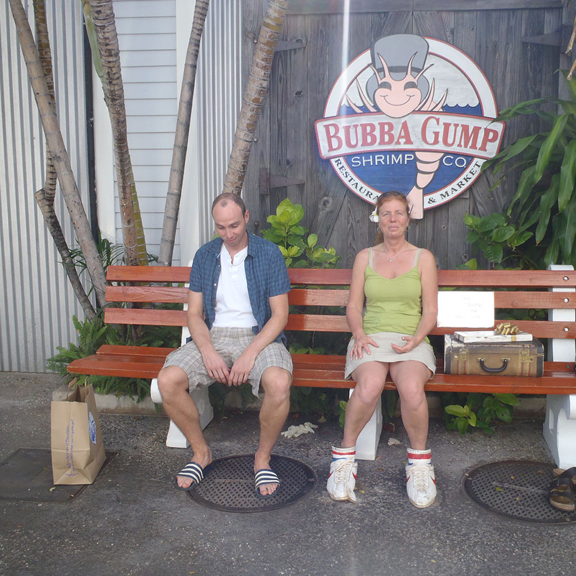 Natürlich waren wir bei Forrest Gump auf einen Besuch. Hier gibt es ein Bubba Gump Shrimp Restaurant und daneben steht die berühmte Bank mit einigen witzigen Utensilien.