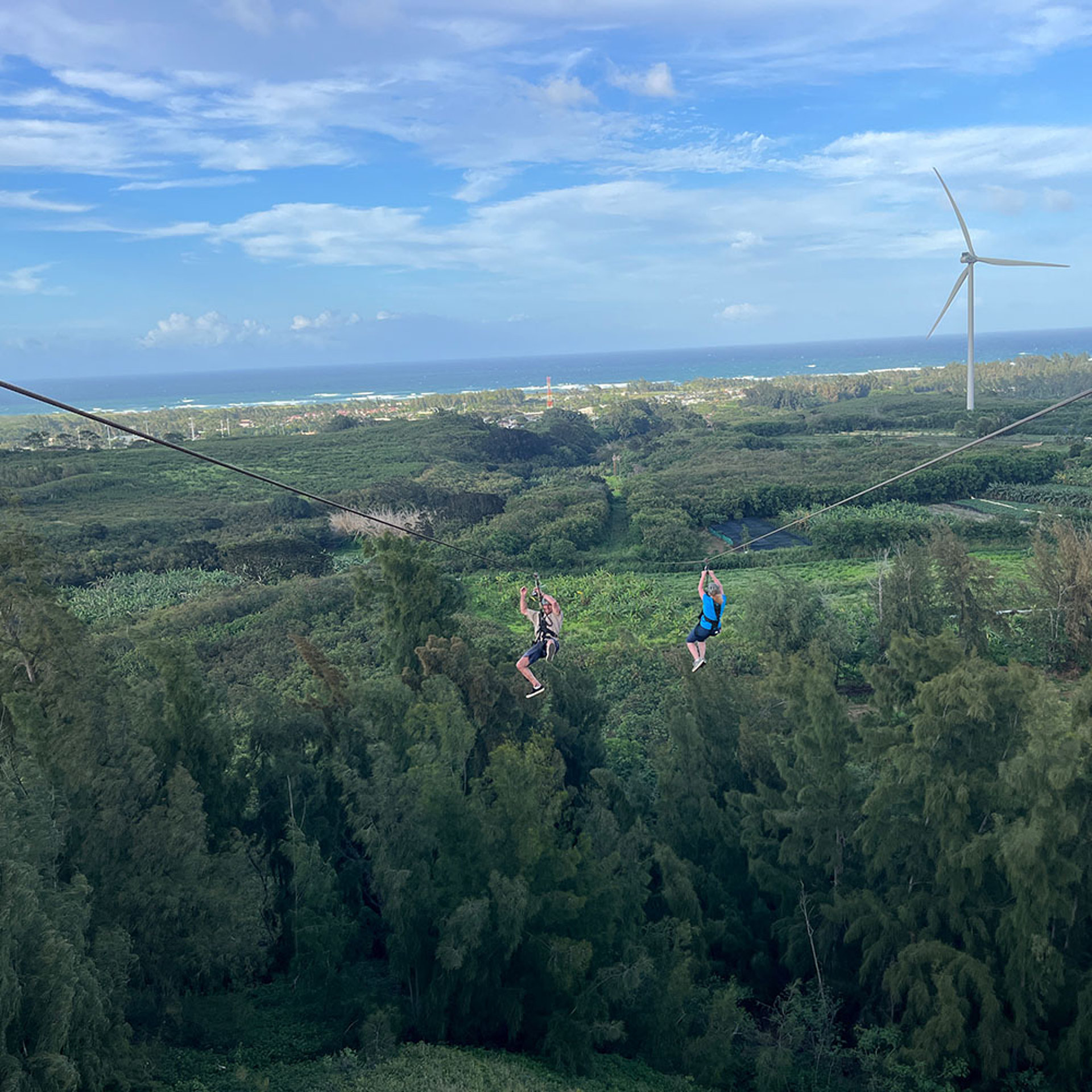 Zip Lining stand auf unserem Plan und www.climbworks.com bietet eine dreistündige Zipline Tour an. Die längste Line ist über 800 m lang und der höchste Sprung ist von über 130 m Höhe.